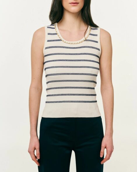 ΣΕΤ Πλεκτή ζακέτα μαρινιέρα με χρυσή αλυσίδα ΚΑΙ ΤΟΠ