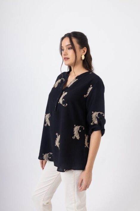 Μαύρη Πουκαμίσα-Μπλούζα με Χρυσά Λαχούρια