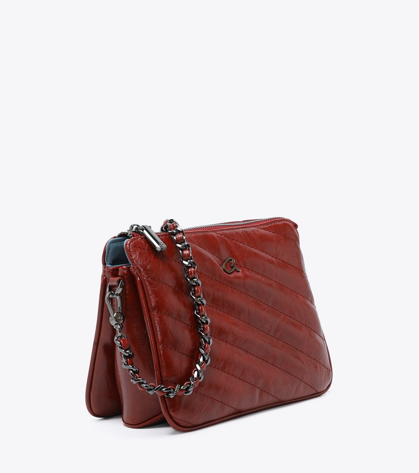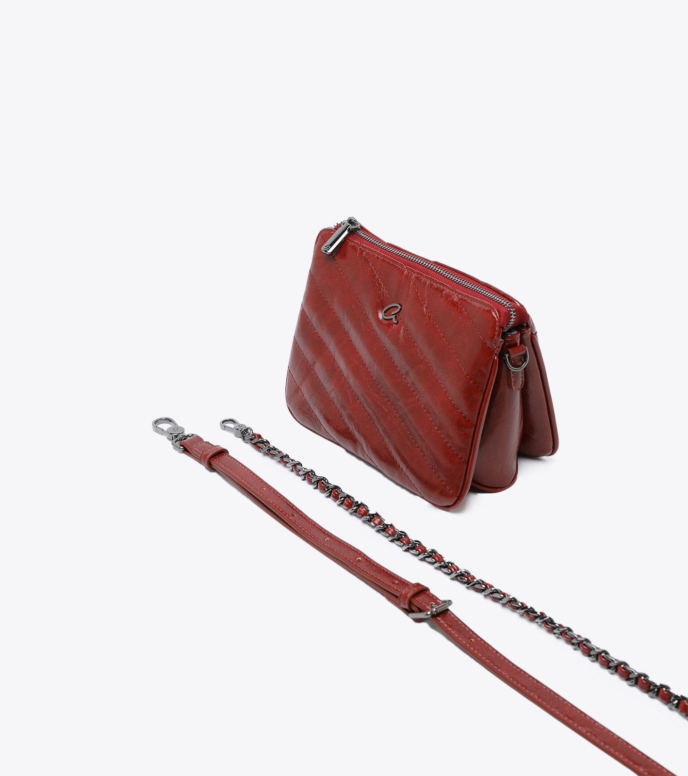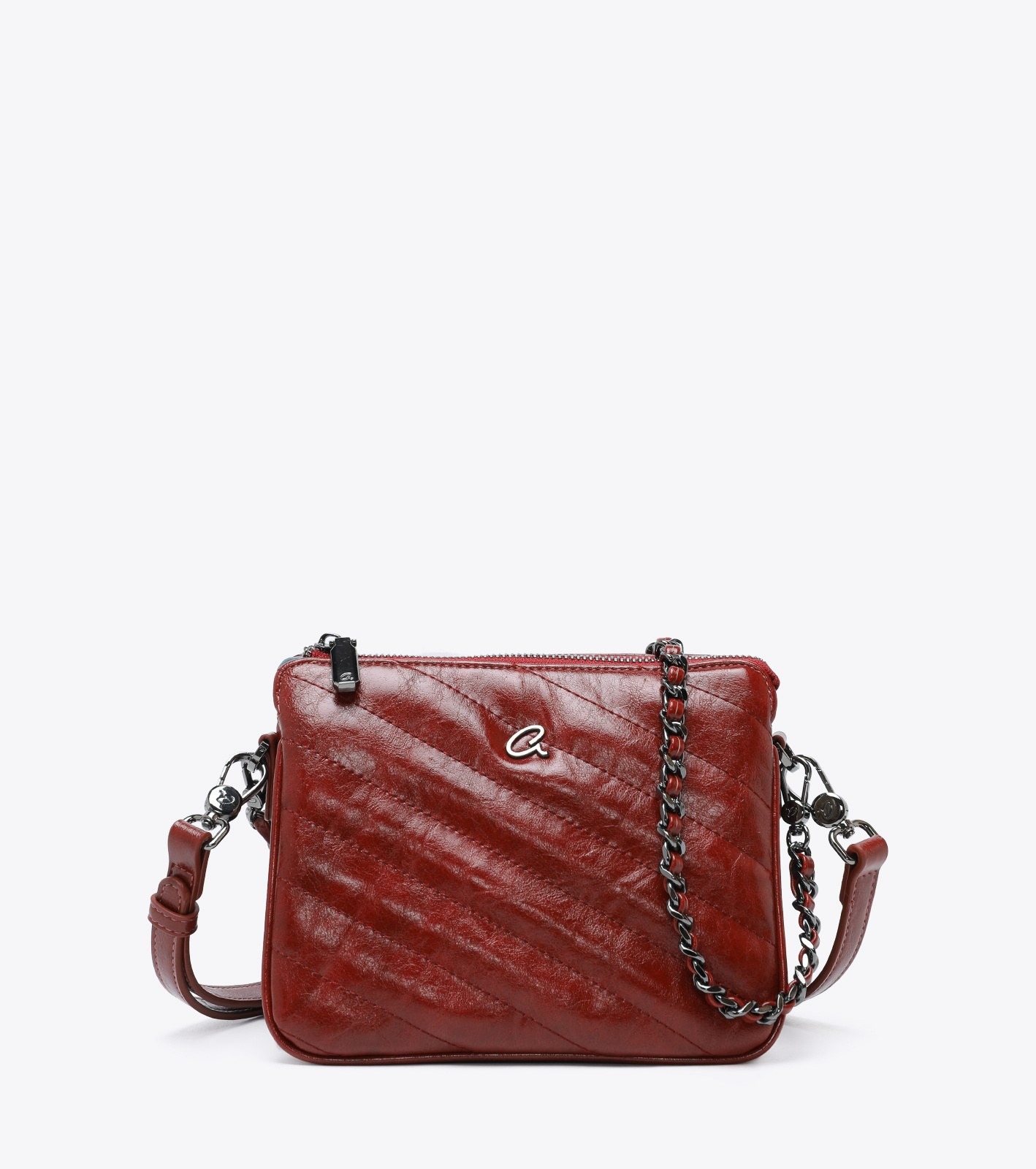 Γυναικεία τσάντα χιαστί Valeria, κατασκευασμένη από τεχνόδερμα με ραφές. Διαθέτει μεταλλικές λεπτομέρειες σε gun απόχρωση και κλείσιμο με φερμουάρ. Συνοδεύεται από δύο αποσπώμενα λουράκια, ένα χιαστί που μπορεί να ρυθμιστεί και ένα με αλυσίδα για να φορεθεί και ως ώμου. Διαχωρίσμένο σε τρία τμήματα εσωτερικά για ευκολία στην οργάνωση. Ιδανικο για κάθε μέρα.