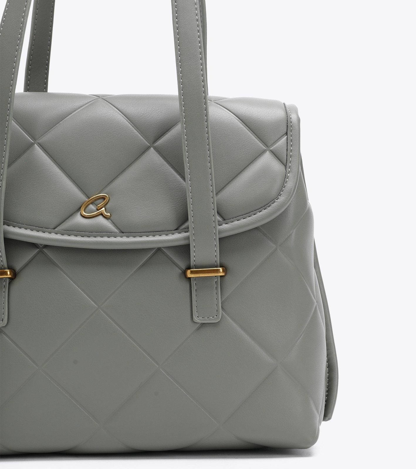 Γυναικεία τσάντα ώμου Lene με διπλά χερούλια. Είναι κατασκευασμένη από τεχνόδερμα με ιδιαίτερη πρεσαριστή καπιτονέ τεχνική. Εσωτερικά είναι επενδυμένη με φόδρα και περιέχει δύο ανοιχτές θήκες και μία με φερμουάρ για οργάνωση. Ασφαλίζει με μαγνητικό κούμπωμα στο καπάκι. Αποτελεί μία πολύ όμορφη επιλογή για τσάντα, ιδανική για να ολοκληρώσει κάθε εμφάνιση.