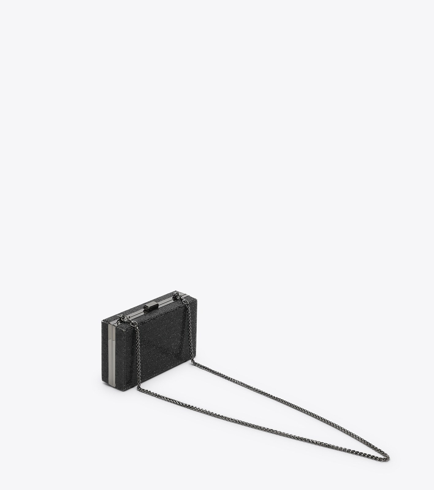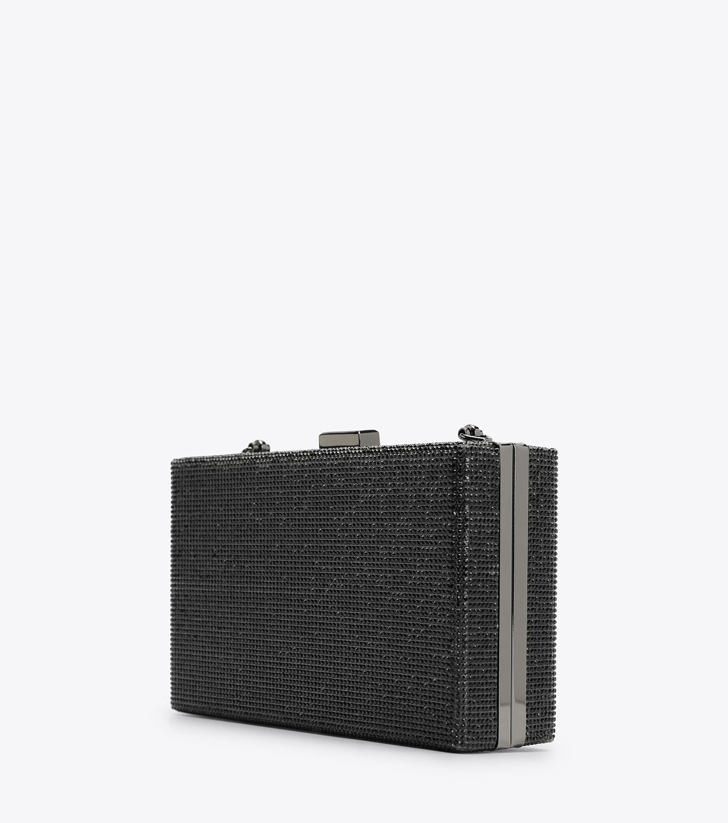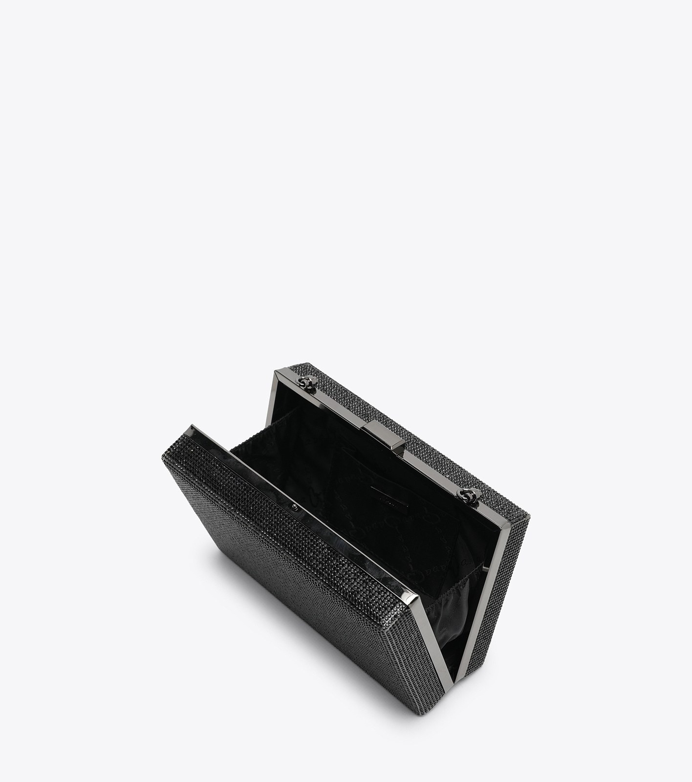 Γυναικείο βραδινό τσαντάκι με μεταλλικό περίβλημα. Κουμπώνει με μεταλλικό κούμπωμα και διαθέτει ιδιαίτερη εμφάνιση χάρης τα στρας που το καλύπτουν. Εσωτερικά είναι φοδραρισμένο και διαθέτει ένα μικρό τσεπάκι. Η αλυσίδα που το συνοδεύει είναι αποσπώμενη ώστε να κρατηθεί στο χέρι ή να φορεθεί και ως χιαστί. Ένα πολύ όμορφο τσαντάκι για εμφανίσεις που θα ξεχωρίσουν.