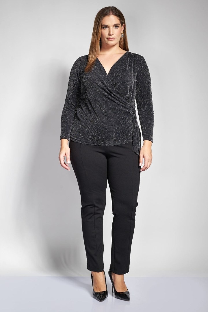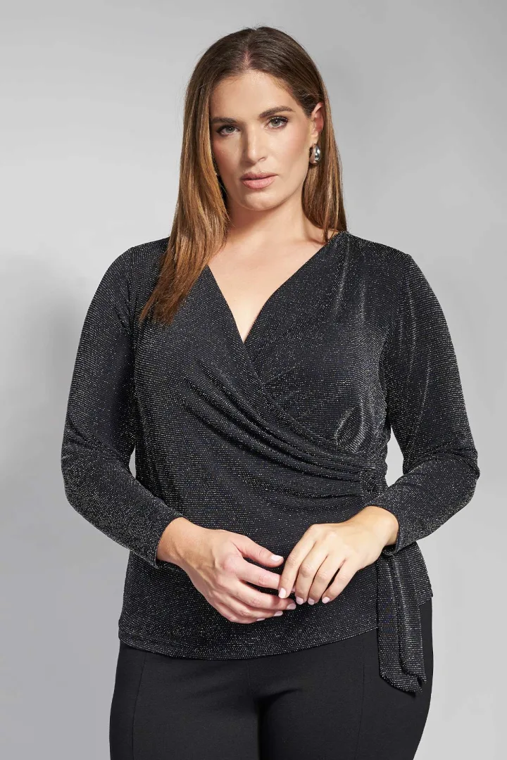 Μπλούζα με κρουαζέ σχέδιο και V-λαιμόκοψη είναι ιδανική για βραδινή εμφάνιση και γιορτινό look.