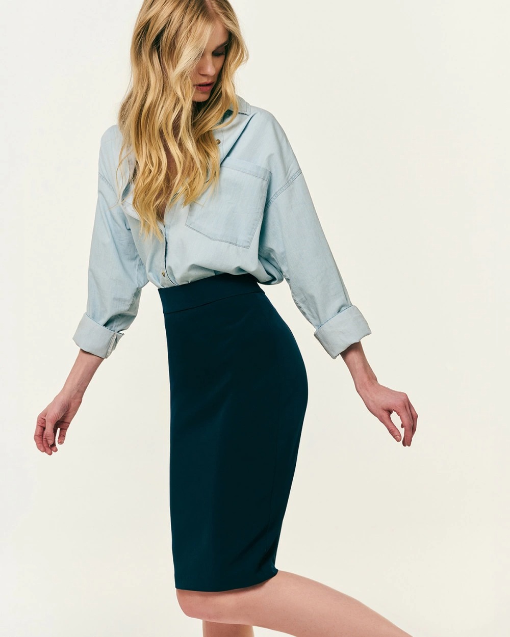Φούστα pencil κρεπ Μπλέ