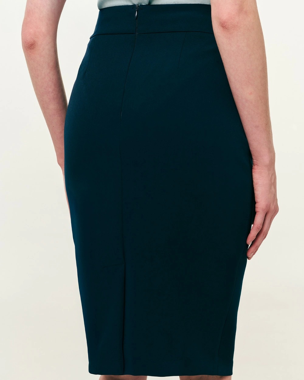Φούστα pencil κρεπ. Με σκίσιμο πίσω στα πόδια και κλείσιμο πίσω με κρυφό φερμουάρ.