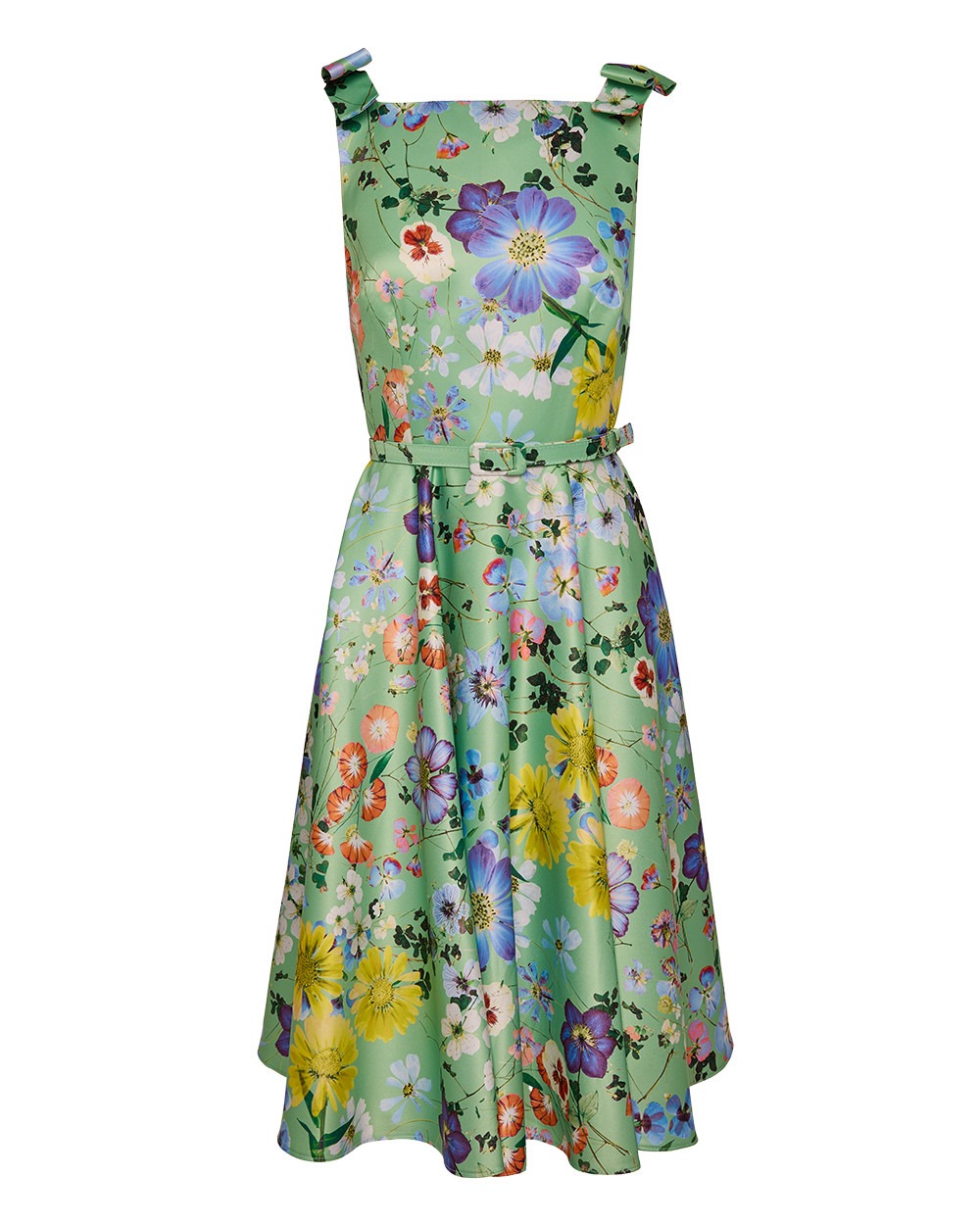 Φόρεμα floral με διακριτικό άνοιγμα στη πλάτη και φιόγκους στους ώμους.