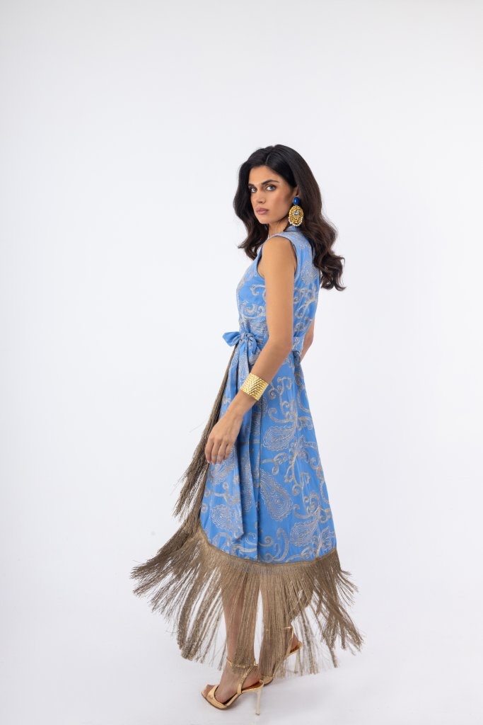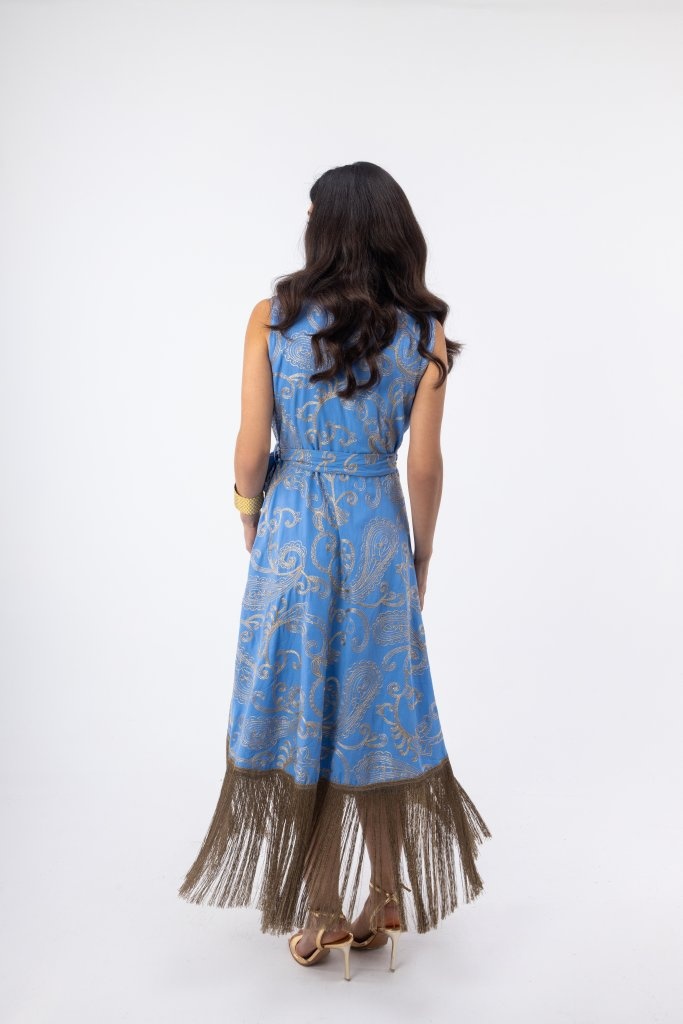 Το τελείωμα με κρόσσια προσθέτει κίνηση και μια πιο fashion αισθητική, κάνοντας το φόρεμα ιδανικό για εμφανίσεις που θέλουν να ξεχωρίζουν χωρίς υπερβολή. Είναι ένα κομμάτι που συνδυάζει άνεση και στυλ, κατάλληλο τόσο για βραδινές εξόδους όσο και για πιο ιδιαίτερες περιστάσεις.