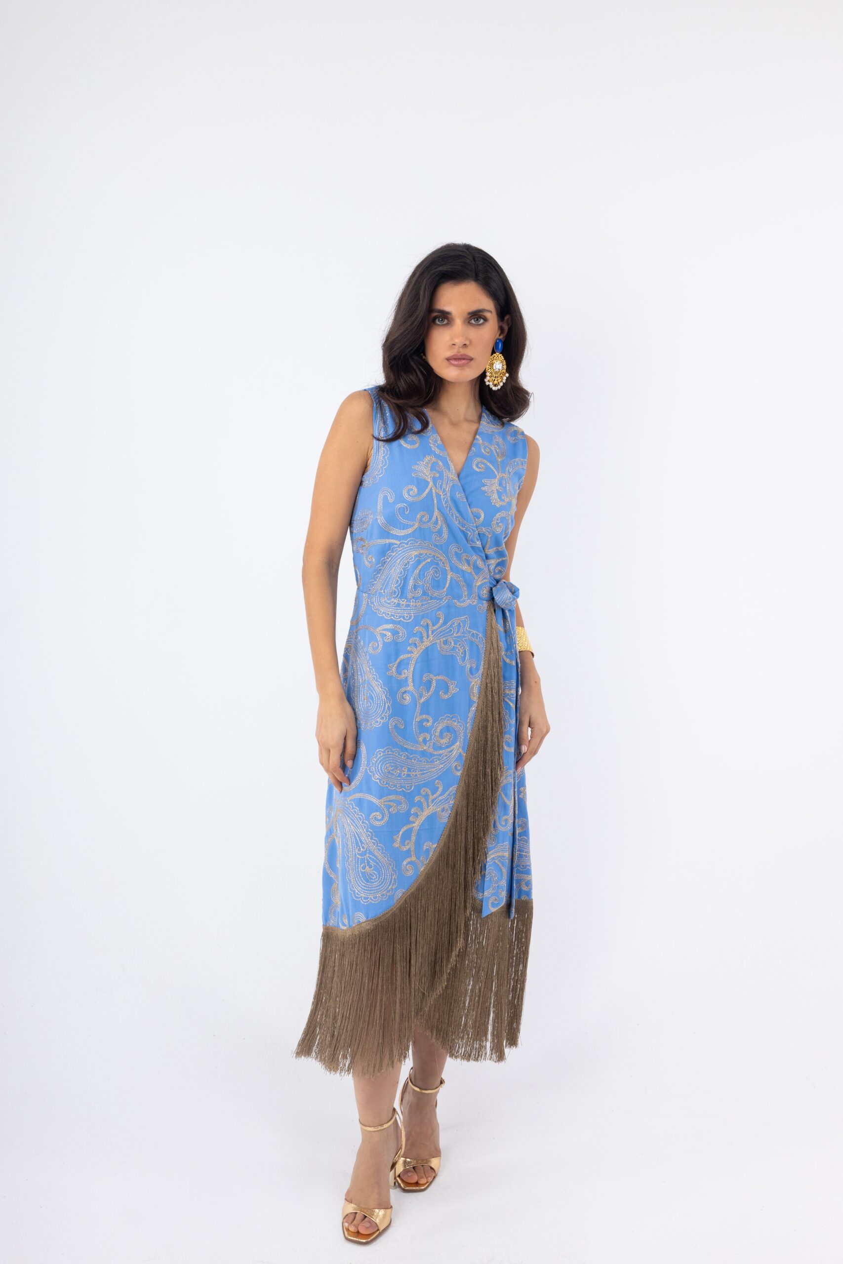 Θα αγαπήσεις το Γυναικείο Midi Φόρεμα Σιέλ με Χρυσά Λαχούρια & Κρόσσια γιατί προσφέρει μια μοναδική ισορροπία ανάμεσα στη θηλυκότητα και τη μοντέρνα κομψότητα. Το σχέδιο με τα χρυσά λαχούρια δίνει χαρακτήρα στο σύνολο, ενώ το φόρεμα παραμένει εύκολο στους συνδυασμούς, αποτελώντας μια επιλογή που αναβαθμίζει άμεσα κάθε εμφάνιση.